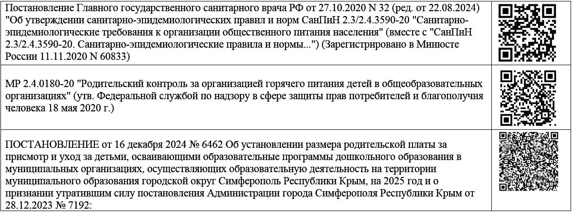 В соответствии с ПОСТАНОВЛЕНИЕМ от 16 декабря 2024 № 6462 Об установлении размера родительской платы за присмотр и уход за детьми, осваивающими образовательные программы дошкольного образования в муниципальных организациях, осуществляющих образовательную деятельность на территории муниципального образования городской округ Симферополь Республики Крым, на 2025 год и о признании утратившим силу постановления Администрации города Симферополя Республики Крым от 28.12.2023 № 7192: