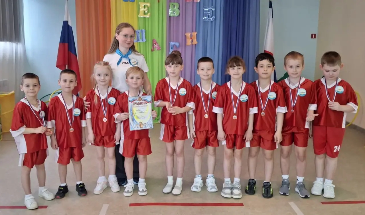 С радостью поздравляем команду воспитанников из подготовительных группы детского сада №7 «Жемчужинка», которая заняла третье место во II этапе городских спортивных соревнований «Первые шаги»!